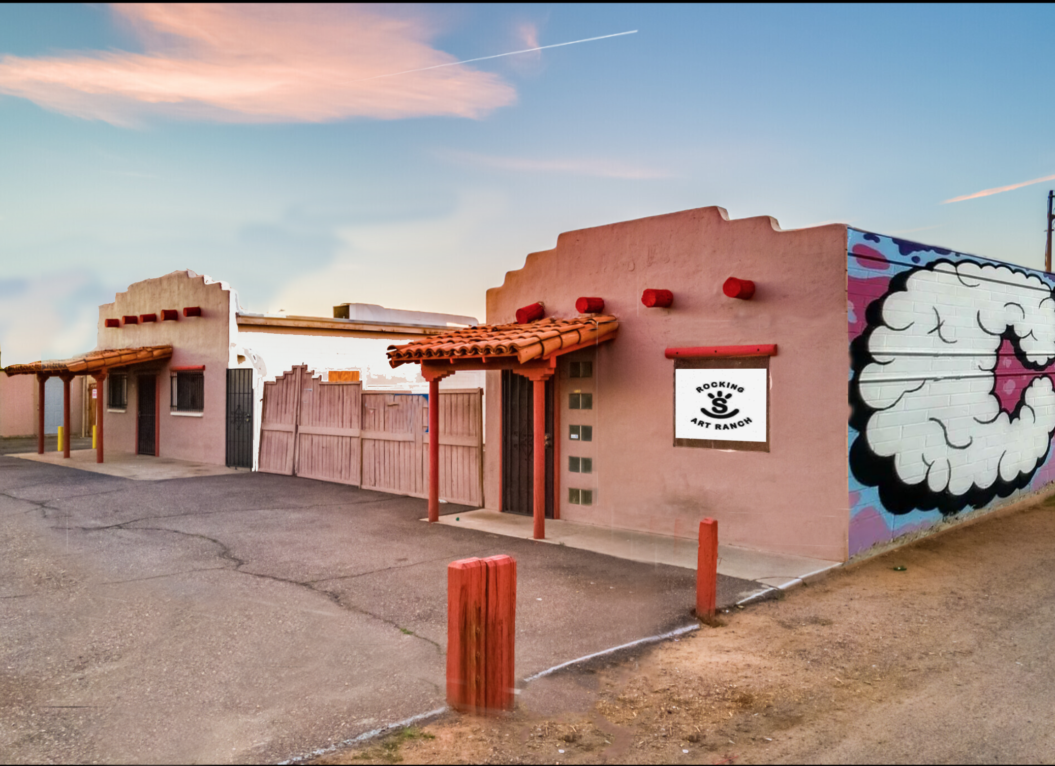 The Rocking S Art Ranch is a complex of artist studios, providing studio space to 20 artists. The ranch has both private and shared studios, ceramic facilities, and a common courtyard. Studio spaces can also be rented, when available, for short term projects and exhibitions. We are currently full, but vacancies come up regularly. If you are interested in a studio, please contact us at rockingsartranch@gmail.com for information, a tour, or to be added to our waiting list. We host regular artist video nights, open studios, critique groups, and talks. The Rocking S is located at 3131-3133 E Sheridan, Phoenix. AZ 85008.